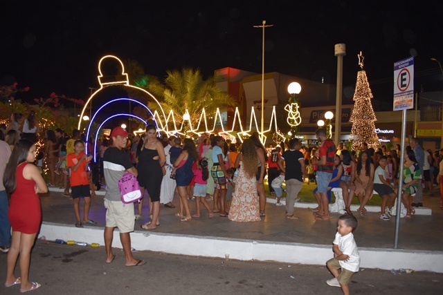 Logo em seguida o prefeito, Dr. Pablo Santos (PT), deu início a contagem regressiva e as luzes se acenderam simultaneamente nas Praças Félix Pacheco e Josnio Ferreira, na Avenida Getúlio Vargas, na Igrejinha do Sagrado Coração de Jesus, na Igreja Matriz Nossa Senhora dos Remédios e no Balão do Bairro Junco.