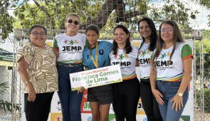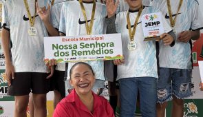 Outra conquista celebrada foi a da equipe feminina de queimada da Escola Otília Neiva, campeã pelo segundo ano consecutivo. A estudante Pamela Emilly, do 8º ano, destacou a experiência vivida na competição.