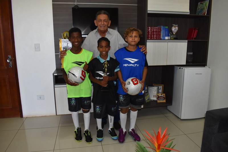 Ao todo, foram entregues aos atletas, kits completos, compostos por vinte pares de meias, chuteiras, shorts e coletes, além de bolas e troféus.