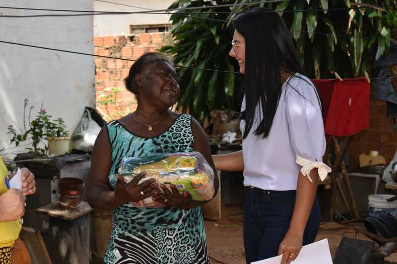 Coordenadora do Auxílio Brasil, Núbia Cristina, também participou da entrega de cestas (Foto: Maria Ivonete)
