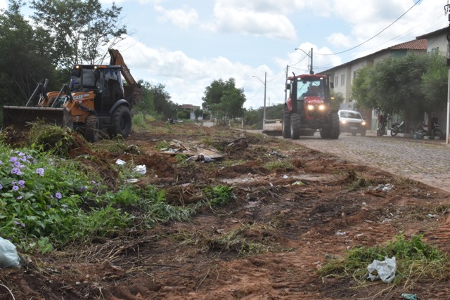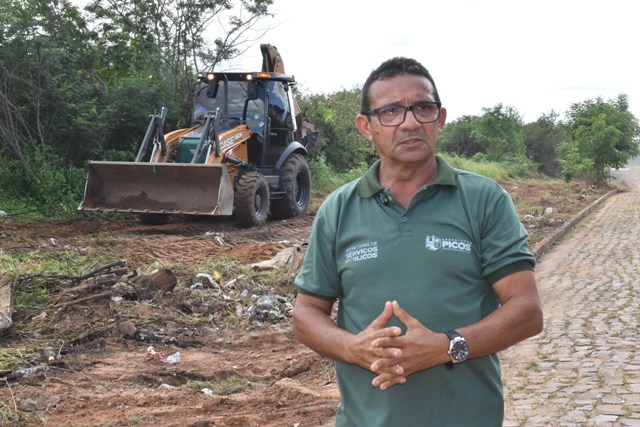 “Estamos aqui no loteamento Antonieta Araújo, fazendo a limpeza do bairro com retroescavadeira, com vassouras mecanizadas, com roçadeiras e com a equipe da limpeza de capina”, destacou o coordenador.
