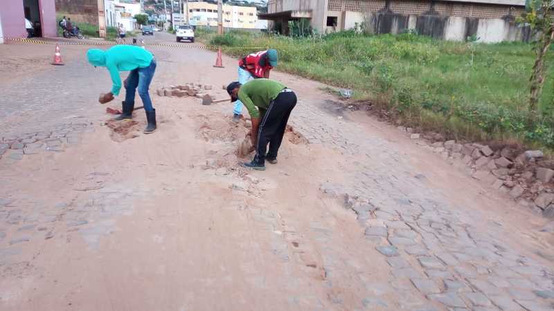 E, assim, obras de recuperação de calçamento e asfalto estão sendo realizados em vários bairros, a exemplo do pantanal, Aroeiras do Matadouro e no centro, na Rua 1º. De maio.