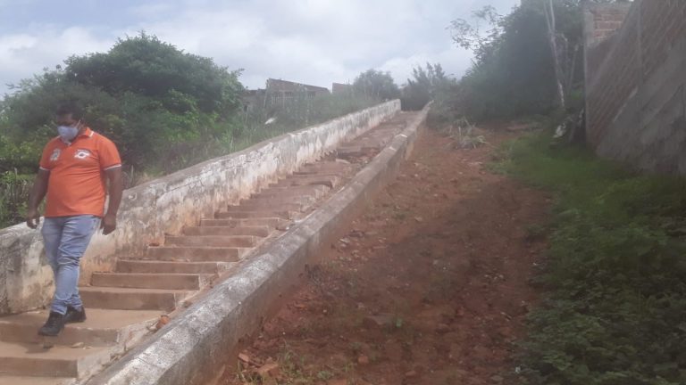 Outra ação da Secertaria de defesa Civil nesse primeiro trimestre de mandato, tem sido buscar a restauração física das escadarias que dão acesso aos morros de Picos: