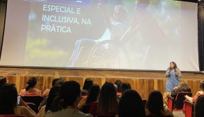 Coordenação da Educação Inclusiva e Equipe Multidisciplinar representam o município em evento formativo realizado no Teatro Sávio Barão, nesta terça (24).